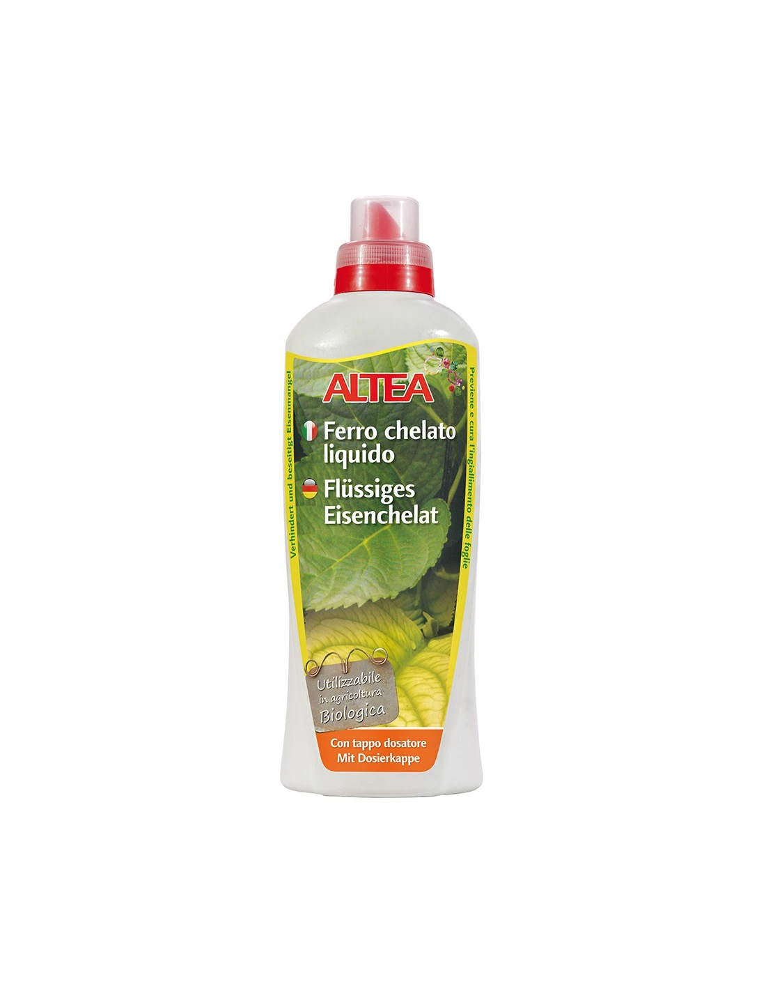 Altea Ferro Liquido contiene Ferro chelato con EDDHA, una molecola organica che ingloba l’atomo di ferro al suo interno permettendo allo ione Ferro di essere trasportato alle radici della pianta, questa particolare formulazione favorisce la fotosintesi e quindi il rinverdimento delle piante.