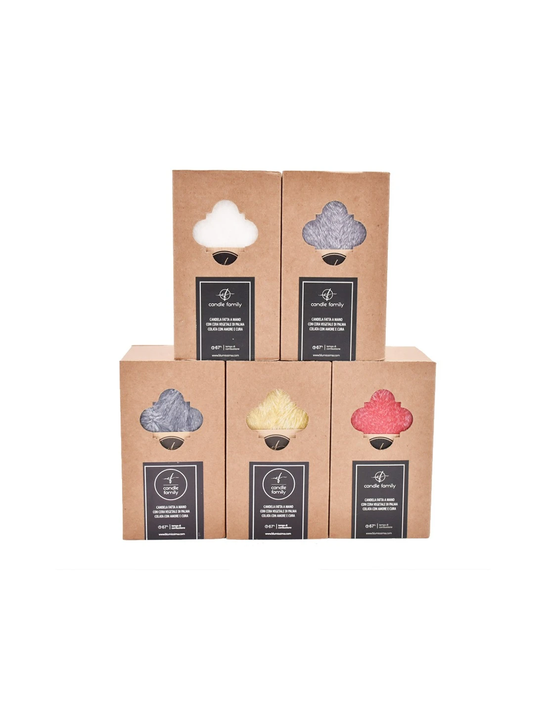 Le candele “Candle Family“, sono candele versate a mano in cera di palma naturale.