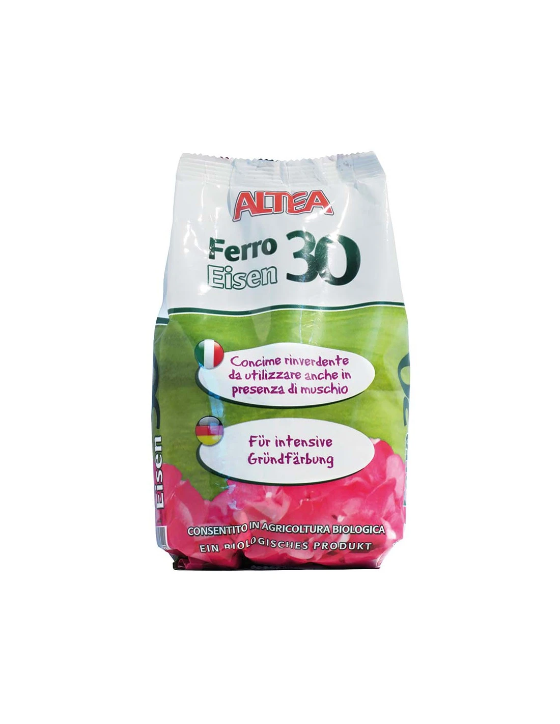 Altea Ferro 30% è inoltre ricco di zolfo, elemento che esplica una importante azione acidificante del terreno e pertanto è particolarmente indicato per la concimazione delle piante acidofile (Azalee, Gelsomini, Ortensie, Rododendri, ecc).