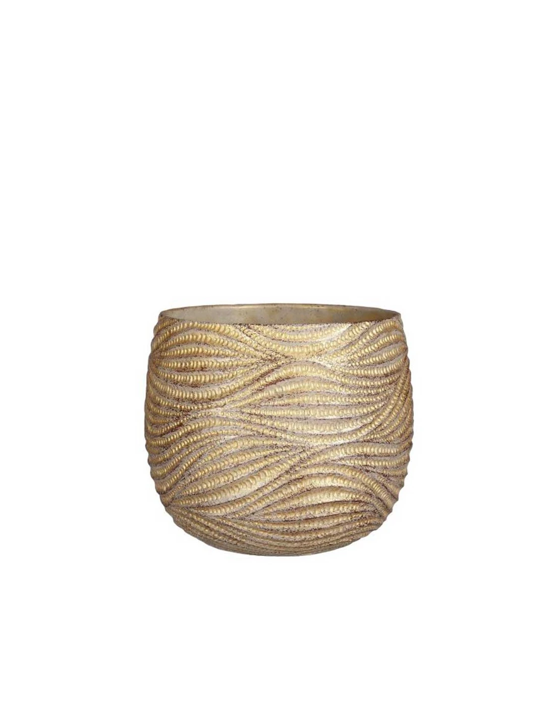 Questo modello dorato ha una forma rotonda con dimensioni H20 x Ø23,5 cm.