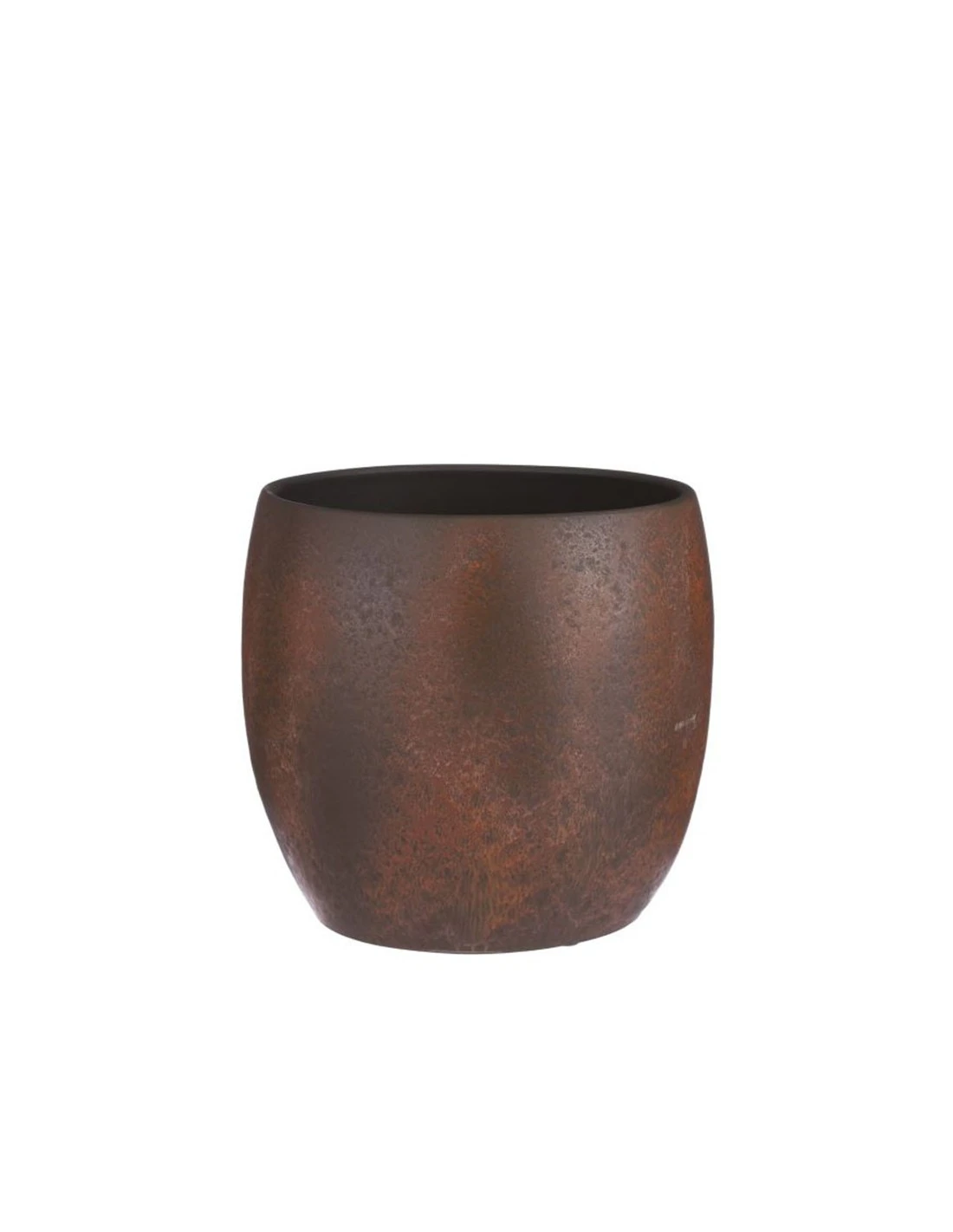 Questo vaso ha un colore ruggine ed è H 31 x Ø 33 cm.
