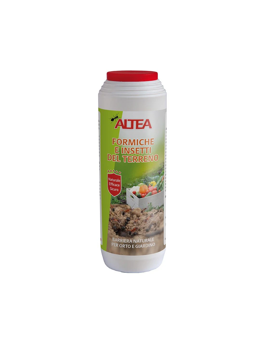 Il prodotto è totalmente di origine naturale e si presenta in forma polverulenta e grazie al barattolo spargitore può essere facilmente distribuito a spaglio nelle aree da proteggere (orti, vasi, tappeti erbosi).