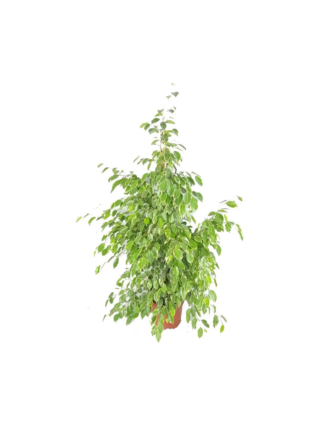 Quando parliamo di Ficus benjamin stiamo facendo riferimento a un arbusto che ha le foglie verdi lanceolate con apice acuminato, non coriacee e di lunghezza massima di 12 cm, che può raggiungere l’altezza di due metri. Con gli anni esso sviluppa le radici aeree delle quali abbiamo appena parlato, che assumono l’aspetto di vere e proprie liane e scendono dai rami più robusti conferendo all’intero sistema pianta un aspetto davvero insolito, che incontra molta curiosità.