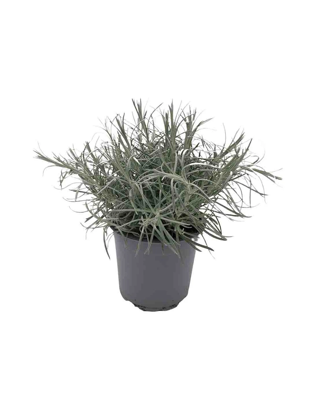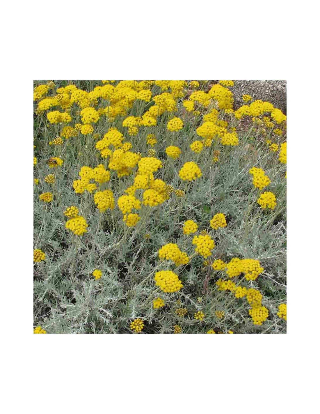 Helichrysum italicum è una cespugliosa perenne mediterranea con fiori giallo oro e bel fogliame grigio sempreverde, dalla forma molto allungata simile a quella della lavanda.