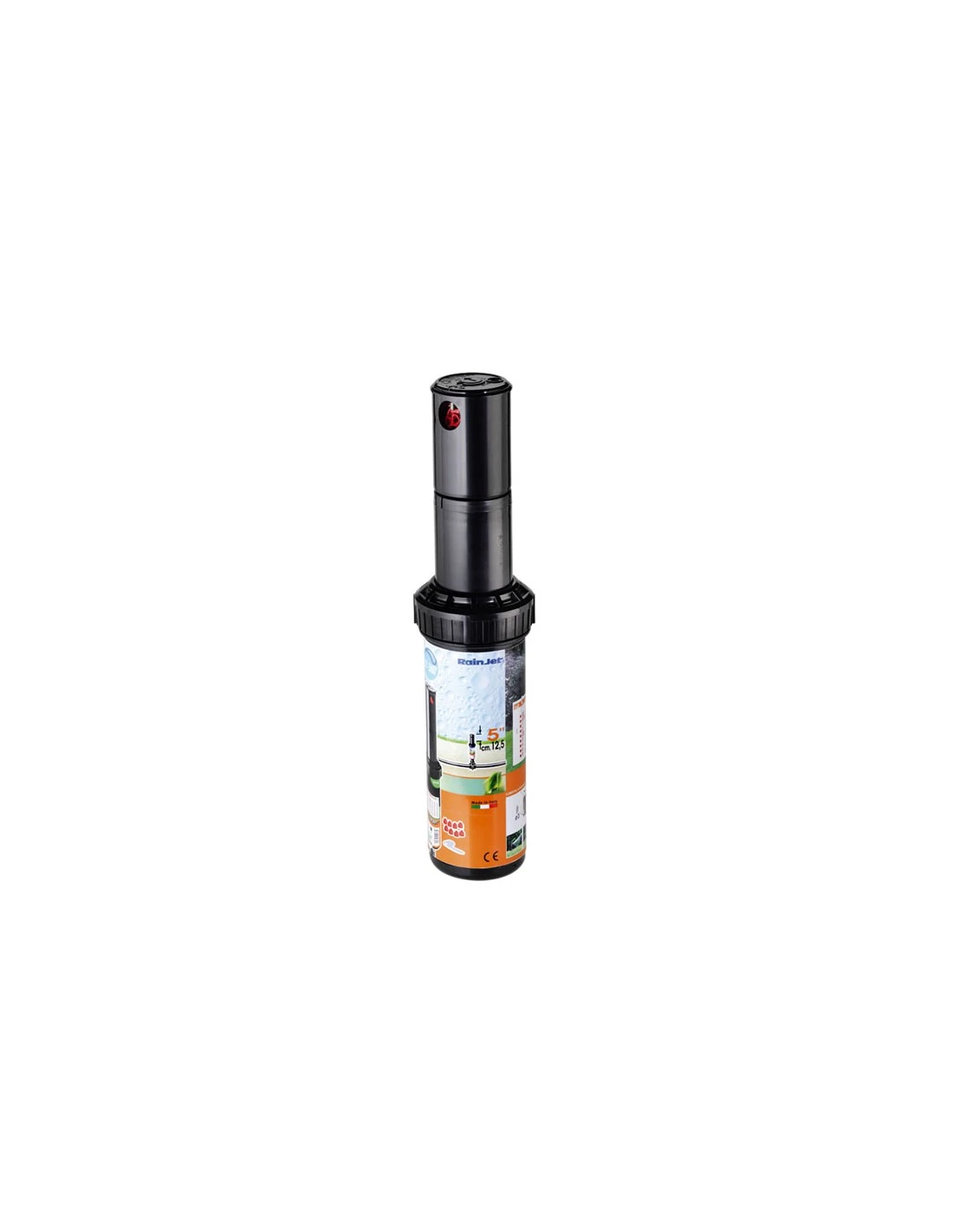 Irrigatore a turbina a grande gittata con ugelli intercambiabili. Regolabile da 30° a 360° senza estrazione della parte mobile. Fessure di eliminazione di eventuale sabbia contenuta nell’acqua. Filtro interno estraibile. Silenzioso grazie alla lubrificazione interna. Escursione dal terreno di 5” (cm 12,5). Base filettata da 3/4” (20 – 27 mm) femmina. Fornito con chiavetta di regolazione. Confezione da 8 pz. Area massima irrigabile 670 m².