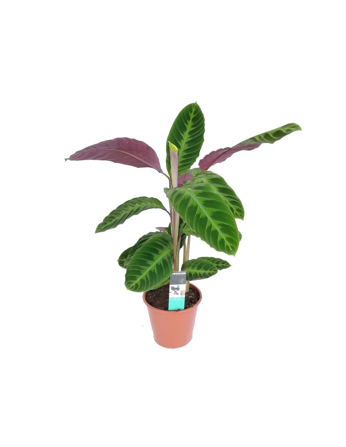 La calathea (comunemente detta calatea) è una pianta tropicale, originaria dell’America meridionale, diffusa in natura anche in alcune zone dell’Asia; in natura queste piante si sviluppano come sottobosco nelle foreste pluviali, sono quindi abituate ad un clima caldo, con pochi sbalzi di temperatura, moto umido e poco soleggiato. Esistono svariate specie di calatea, ma solo meno di una decina vengono coltivate come piante da appartamento, più qualche ibrido. Hanno uno splendido fogliame, di forma ovale o a spada, caratterizzato da colore vivace, con striature in contrasto; tipicamente le foglie di calatea presentano la pagina superiore, verde, con striature o zonature bianche, o verde chiaro; la pagina inferiore è invece spesso rossa o porpora. Formano ampi cespi, con fusti non ramificati, che portano alcune grandi foglie; in primavera, o anche sporadicamente durane l’anno, producono sottili fusti a sezione rotonda, eretti, che spiccano tra le foglie, e portano particolari infiorescenze, formate da brattee colorate, tra cui sbocciano piccoli fiori bianchi, rosa o gialli. Le piante coltivate in appartamento tendono a fiorire solo se le condizioni di coltivazione sono perfette, cosa che purtroppo avviene molto raramente. Le dimensioni di una calathea possono essere varie, dai 40-50 cm delle varietà nane, fino al metro delle specie con foglie molto grandi. Piante molto particolari e decorative, per tutto l’arco dell’anno, si trovano con grande facilità in vivaio, ma la loro coltivazione necessita di qualche accorgimento, perché tendono ad avere esigenze ben precise e a non adattarsi a condizioni anche leggermente avverse.