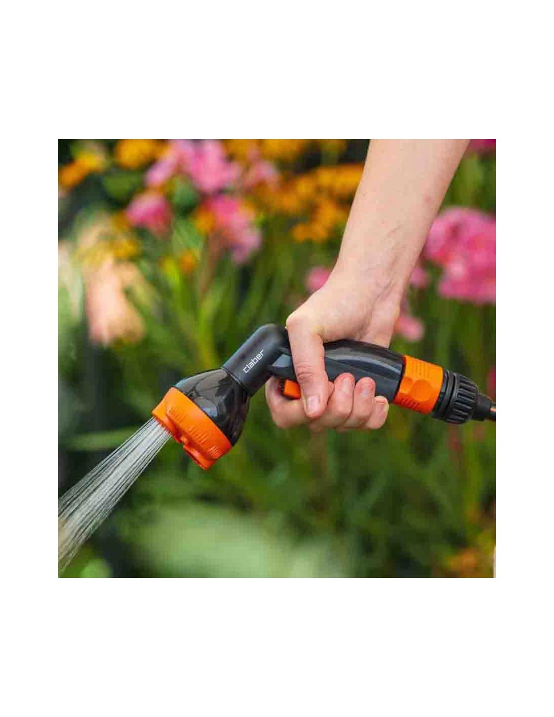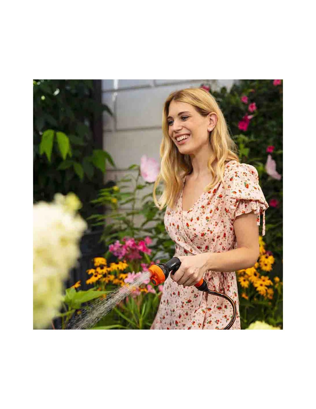Leggera e compatta pistola multifunzione dotata di aeratore. Impugnatura ergonomica. Comodo meccanismo anteriore a pulsante per la regolazione e la chiusura del flusso dell’acqua. 2 regolazioni di portata. Ruotando la testa della pistola si ottengono 4 diversi getti: a doccia, nebulizzato, aerato, concentrato.