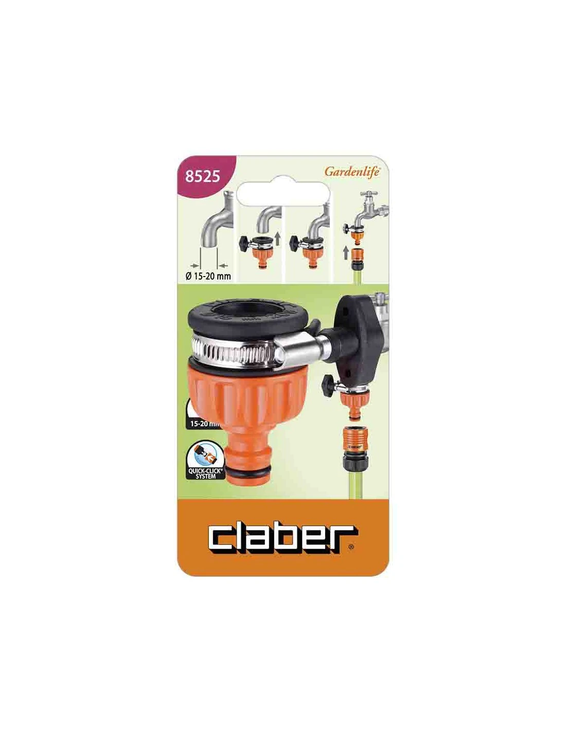 Per rubinetti lisci a sezione rotonda (diametro esterno minimo 15, massimo 20 mm). Con fascetta in acciaio inox. Attacco Quick-Click.