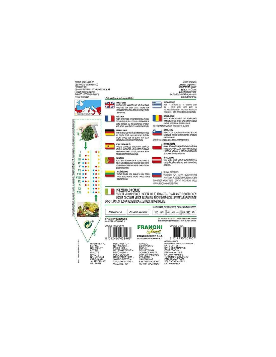 Varietà medio-precoce. Varietà molto aromatica, pianta a stelo sottile con foglie di colore verde scuro e di buone dimensioni. Rivegeta rapidamente dopo il taglio. Buona resistenza alle basse temperature.