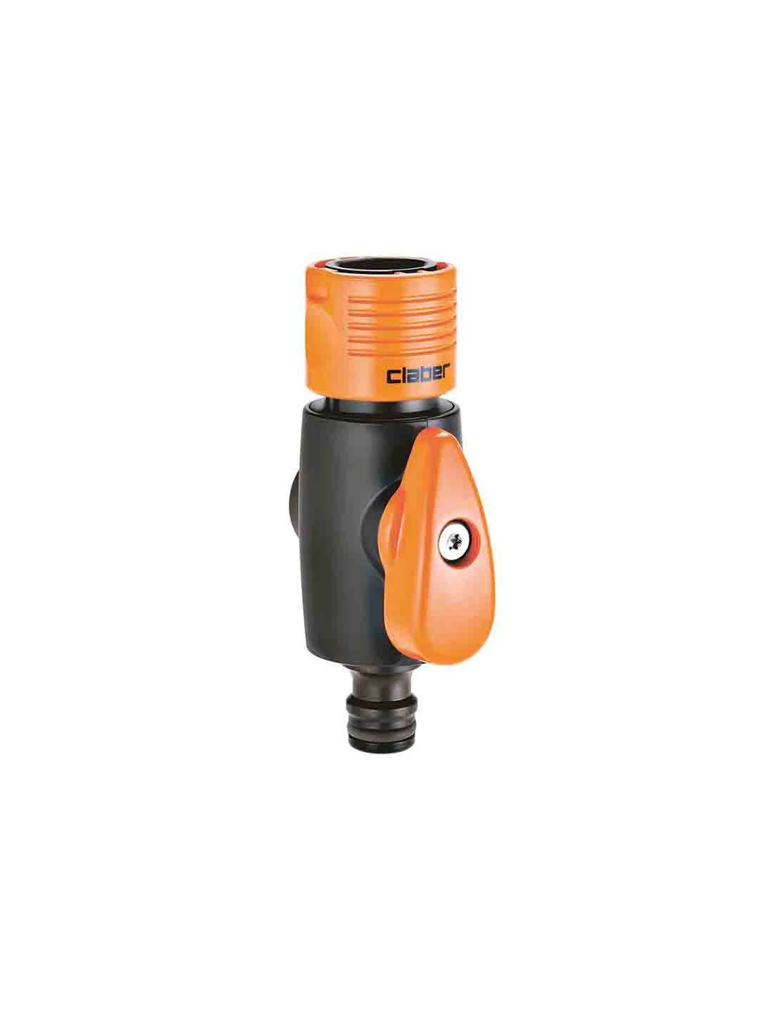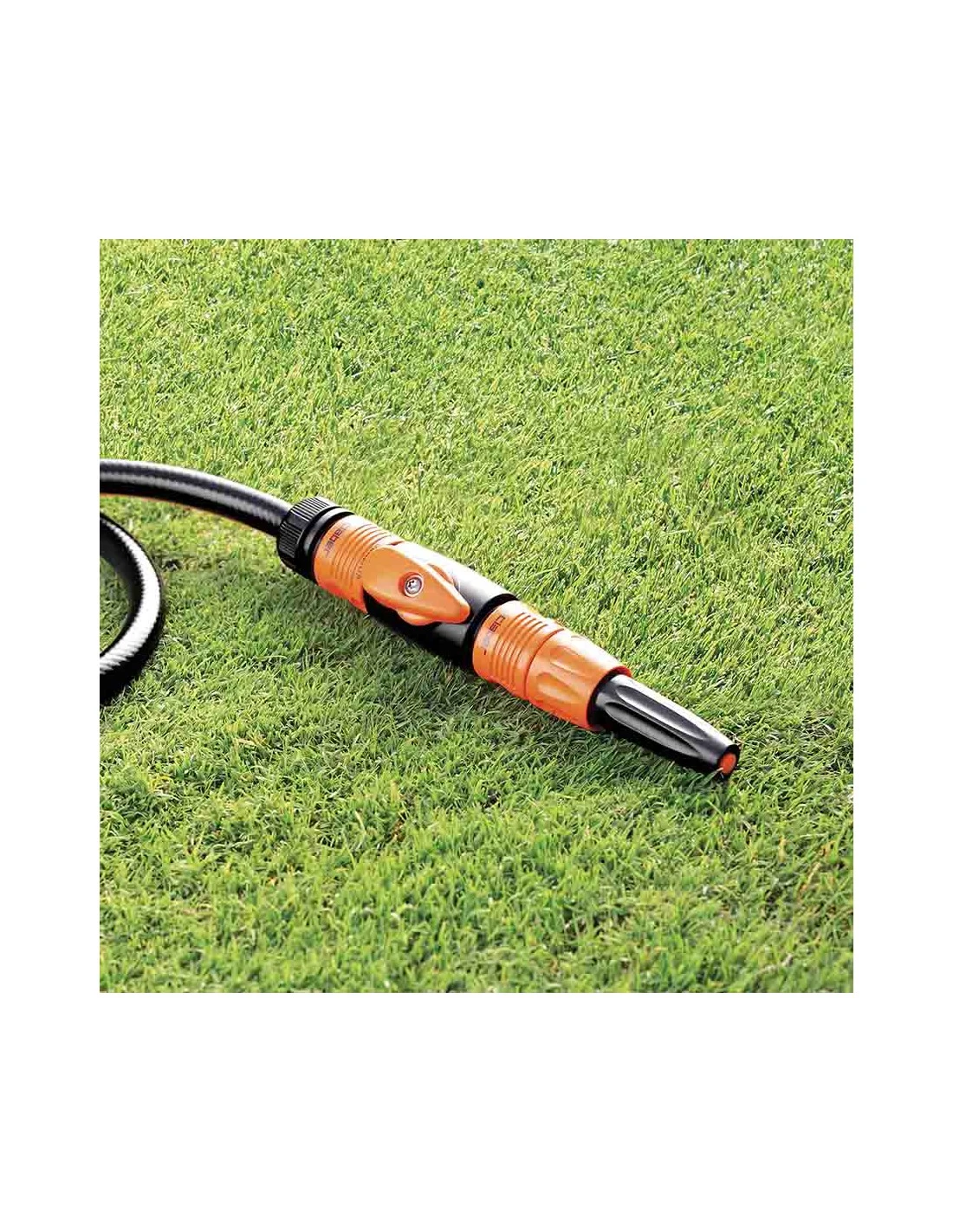 Raccordo automatico con rubinetto. Permette di aprire/chiudere il getto e regolare il flusso d’acqua. Manopola di regolazione prensile. Attacco Quick-Click.