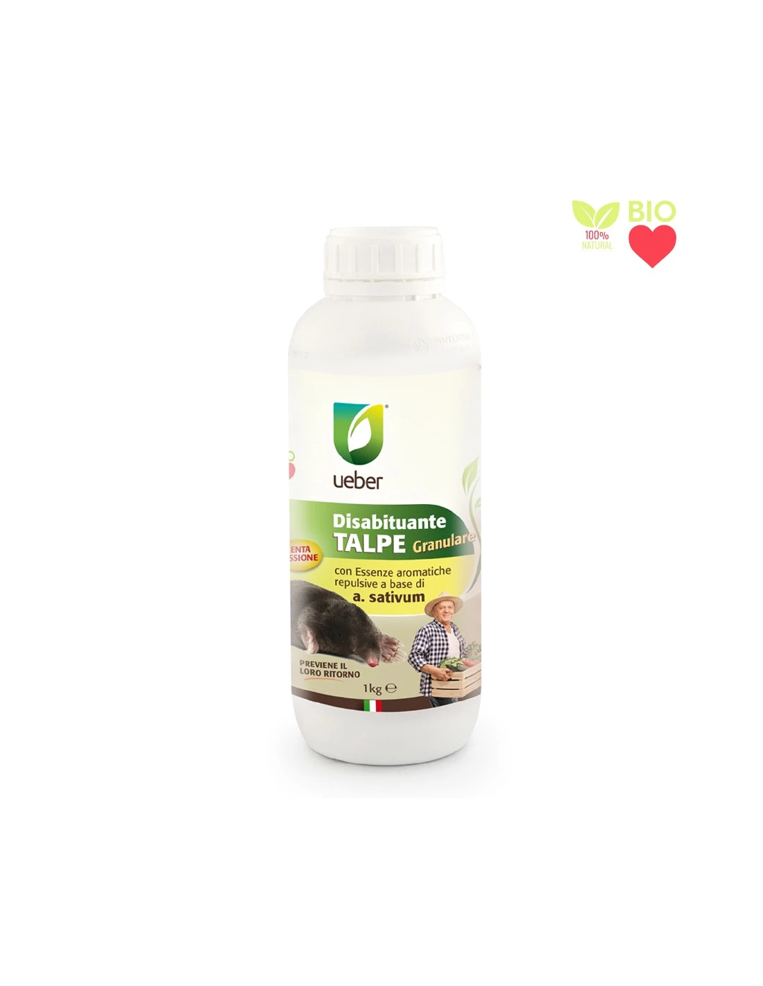 Caratteristiche: Granuli da cospargere sul terreno per allontanare le Talpe in modo innocuo e prevenirne il ritorno. Il trattamento ha una durata, se non dilavato da pioggia o irrigazioni, di circa due/tre settimane. Non è dannoso per animali, persone, piante e colture in genere.