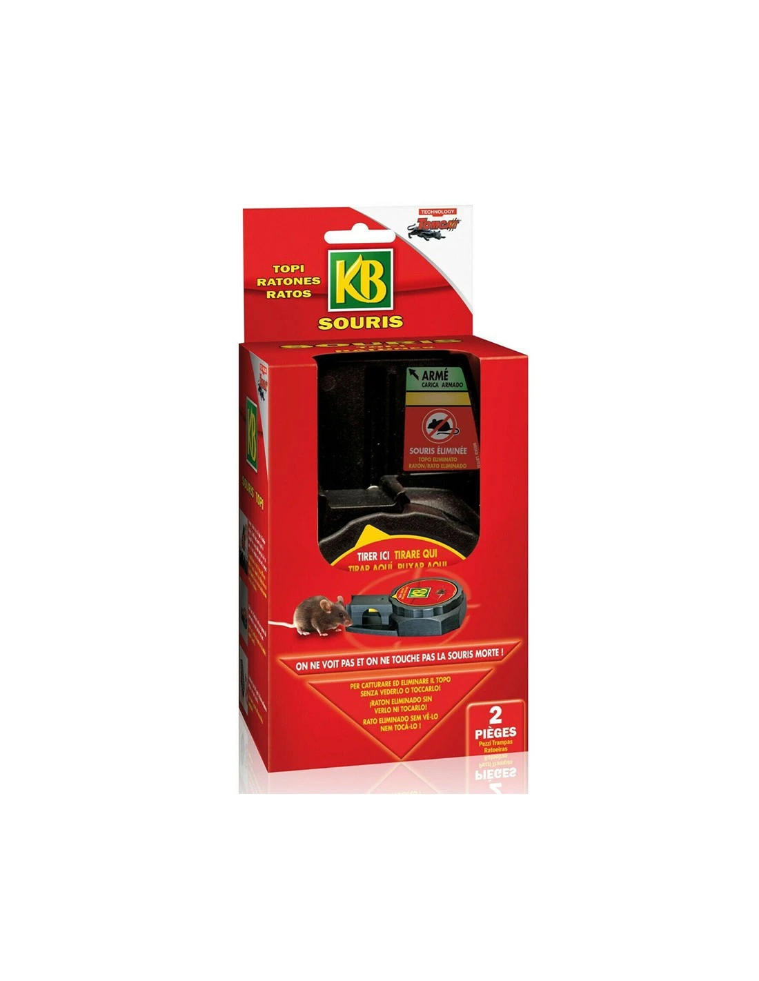 Ideale per i luoghi in cui vivono animali domestici o dove si desidera evitare la vista del topo catturato. Collocare la trappola lungo le vie di transito o nelle vicinanze del nido o di fonti di cibo