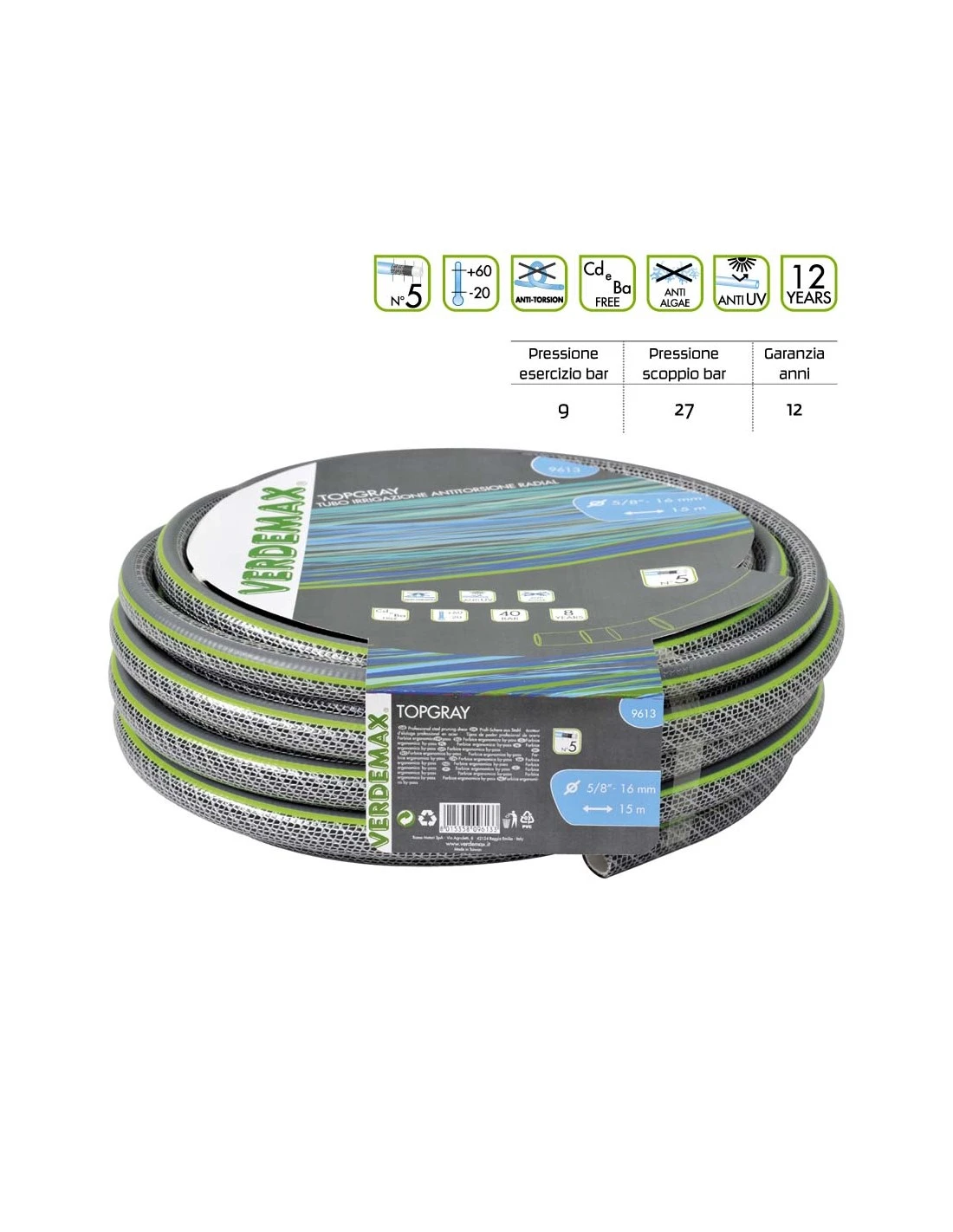 Tubo da giardino a 5 strati antitorsione topgrey ø 5/8” m rotolo 50