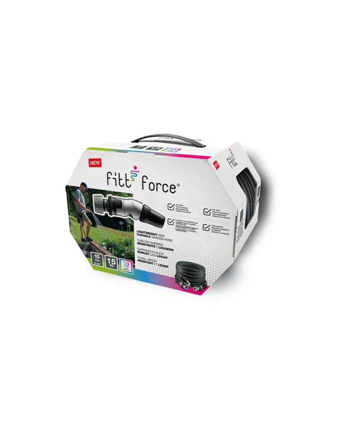 FITT Force è il tubo da giardino per uso intensivo, resistente e compatto, dotato di raccordi e pistola multi-getto o lancia a getto continuo: subito pronto all’uso.